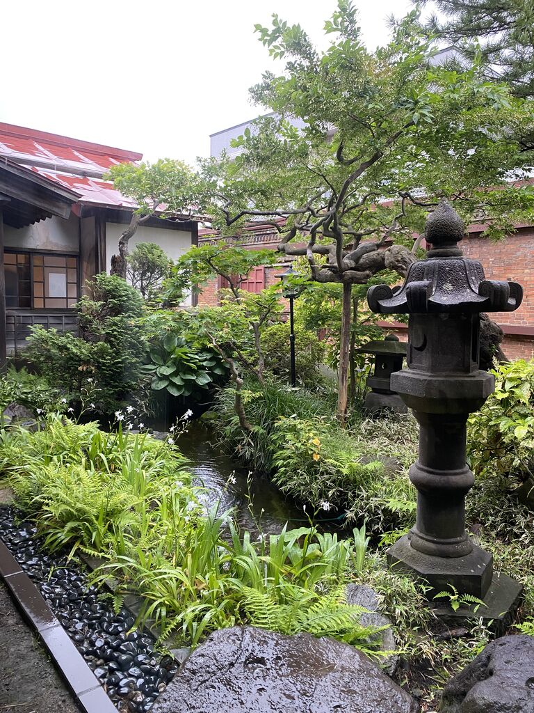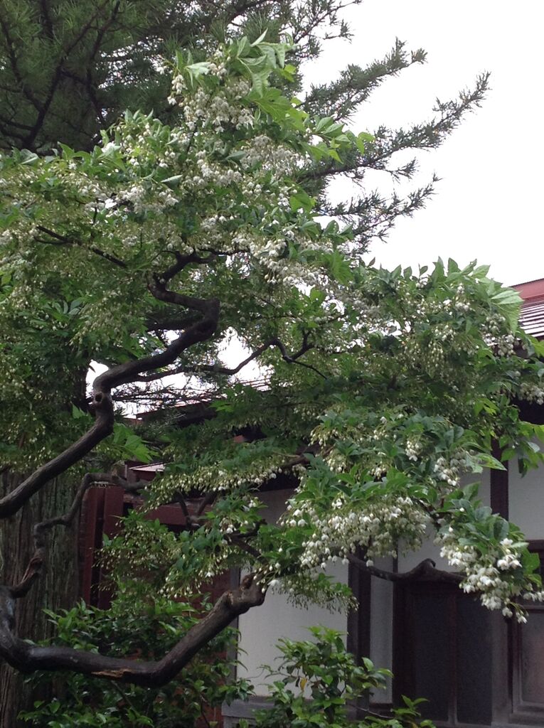 斜陽館の南庭に咲くエゴノキの花。
