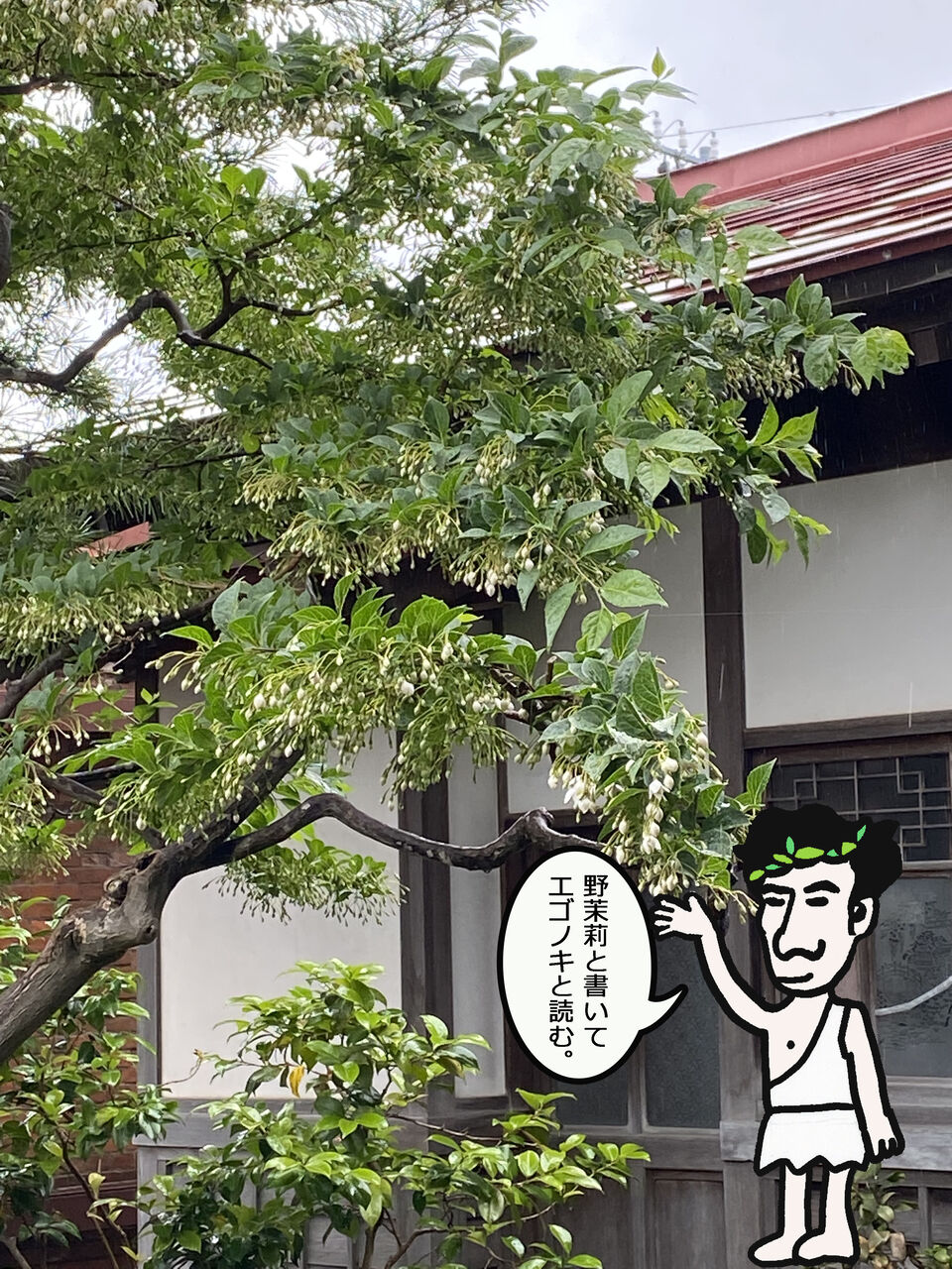雨に滴るエゴノキの花。